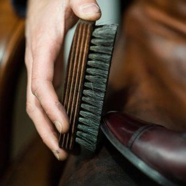 Add a touch of sophistication to your shoe care with this essential tool. The elegant waxed wood handle ensures comfort and style, making it a must-have for shoe enthusiasts.