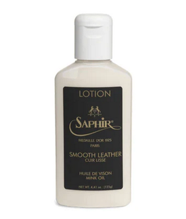 Saphir Médaille d'Or Leather Lotion with Mink Oil is specially formulated to gently cleanse, moisturize, nourish, and protect fine smooth leather.
