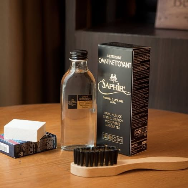 Revive your cherished items with Omni’Nettoyant, a versatile cleaner that tackles dirt and stains on suede, nubuck, textiles, and beyond: