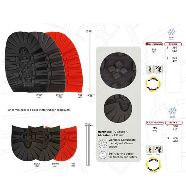 Vibram solid rubber for the winter season. The self-cleaning profile ensures stability and resistance to slipping on all types of surfaces.
